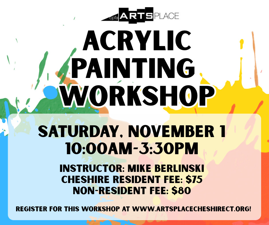Explore the possibilities of still-life painting in this workshop for beginners! Your instructor will cover composition, paint application, and color mixing...all the basics to create a still-life and build your creative confidence! Register online at www.artsplacecheshirect.org #acrylicpainting #cheshirect #thingstodoinct #ArtsPlace #cheshirelovesart